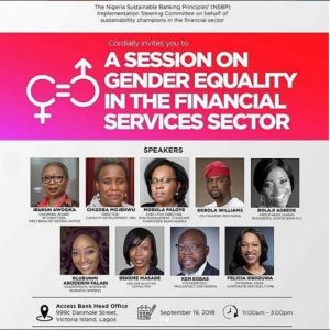 RED co-founder, Adebola Williams will be speaking at the Nigerian Sustainable Banking Principles (NSBP) session on Gender Equality in the Financial Services Sector scheduled to hold on 19 September, 2018 at Access Bank Head Office, Victoria Island, Lagos.
